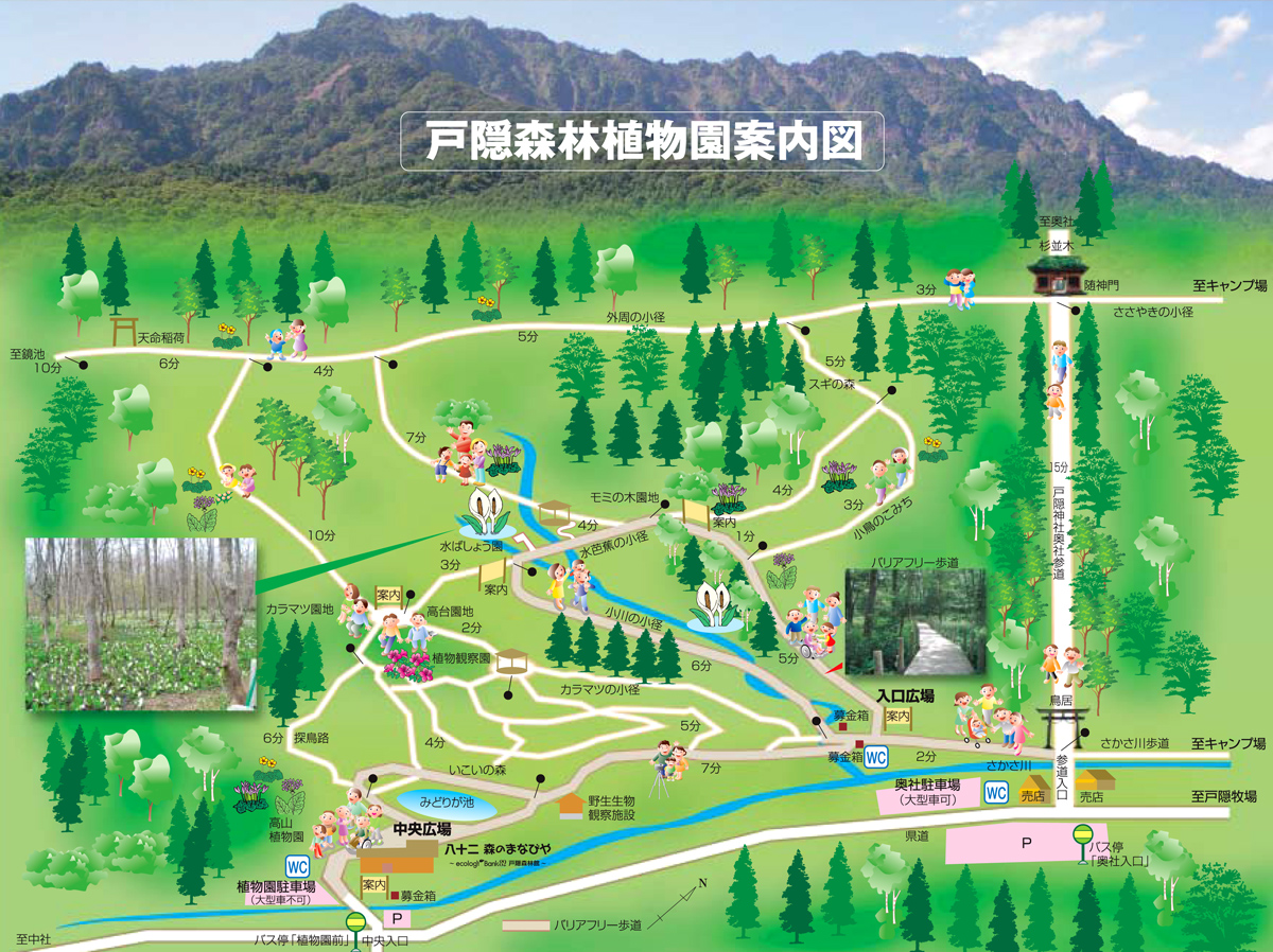 民宿りんどうから車で5分。 戸隠山麓は、富士山麓・浅間山麓と並ぶ日本三大野鳥の生息地として有名です。春は水芭蕉の群生、夏はゲンジボタル・ヘイケボタル・ヒメボタルの3種類もの蛍が見られます。 森林学習館もりのまなびや(入場無料)では戸隠の自然を詳しく知ることが出来ます。 戸隠森林植物園の案内図を参考に、森林公園の花の見ごろや森林公園で見られる鳥たちなどを、時間が許す限りごゆっくり堪能ください。 くれぐれも公園内での撮影などのマナーはお守りください。